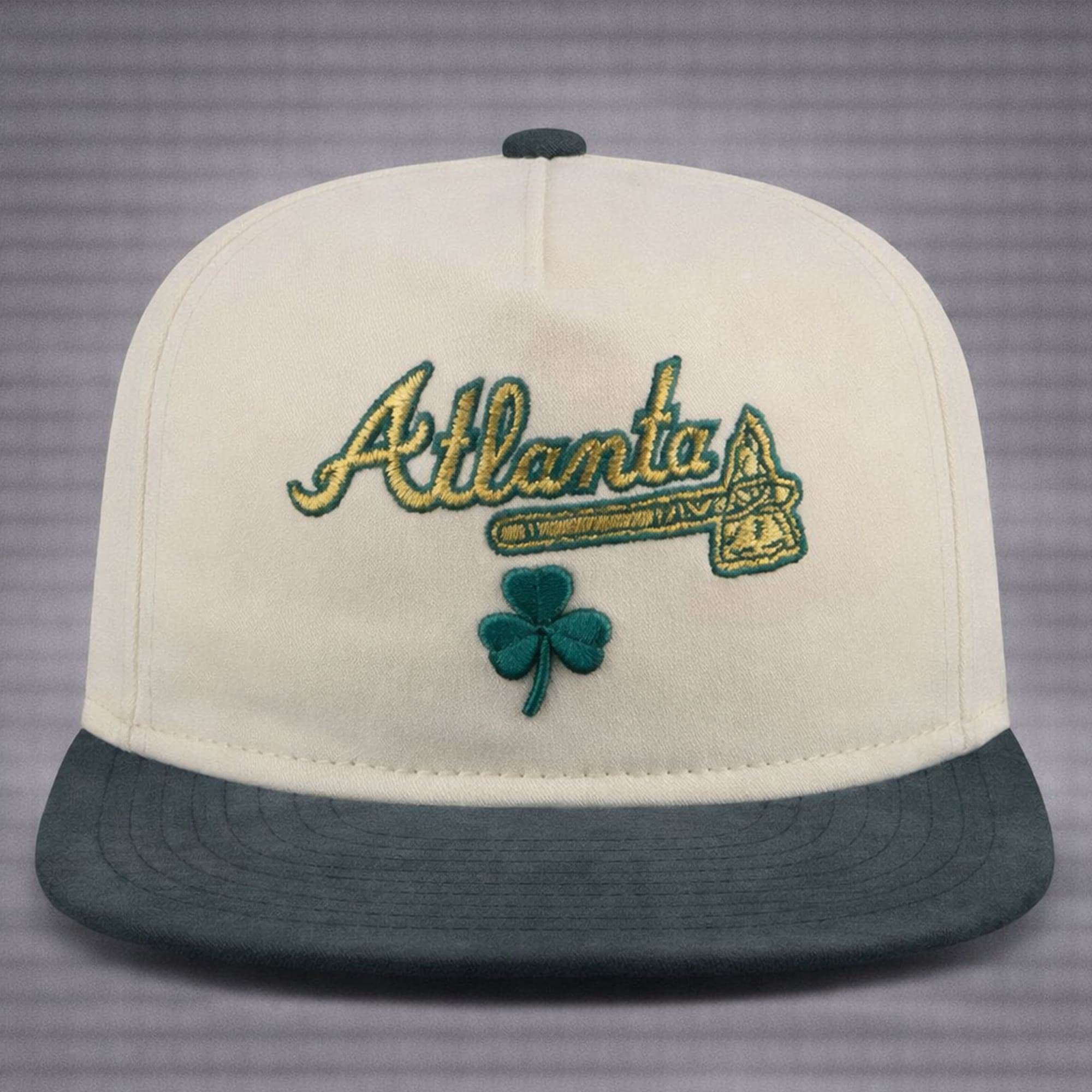 Celebrate St. Patrick’s Day in true Braves style with the 2026 Atlanta Braves Patrick’s Day Metallic Hat. This hat features bold “Atlanta” embroidery in metallic gold and green, with the Braves’ signature tomahawk logo, accented by a metallic green clover. The hat’s cream body paired with a green brim creates a classic yet festive look, perfect for showing off your Braves pride during the holiday festivities.