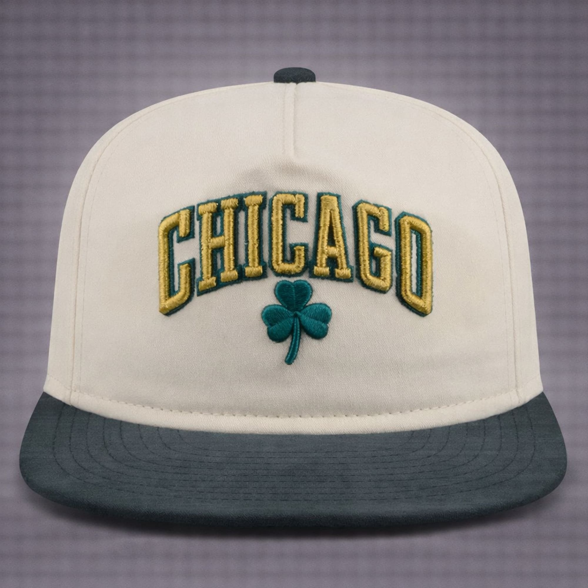 Celebrate St. Patrick’s Day with the 2026 Chicago Bulls Patrick’s Day Metallic Hat. Featuring bold “CHICAGO” embroidery in metallic gold and teal, paired with a vibrant green clover, this hat offers the perfect combination of festive style and team pride. The clean white body and dark green brim give the hat a timeless look, making it ideal for game days and St. Patrick’s Day celebrations alike.