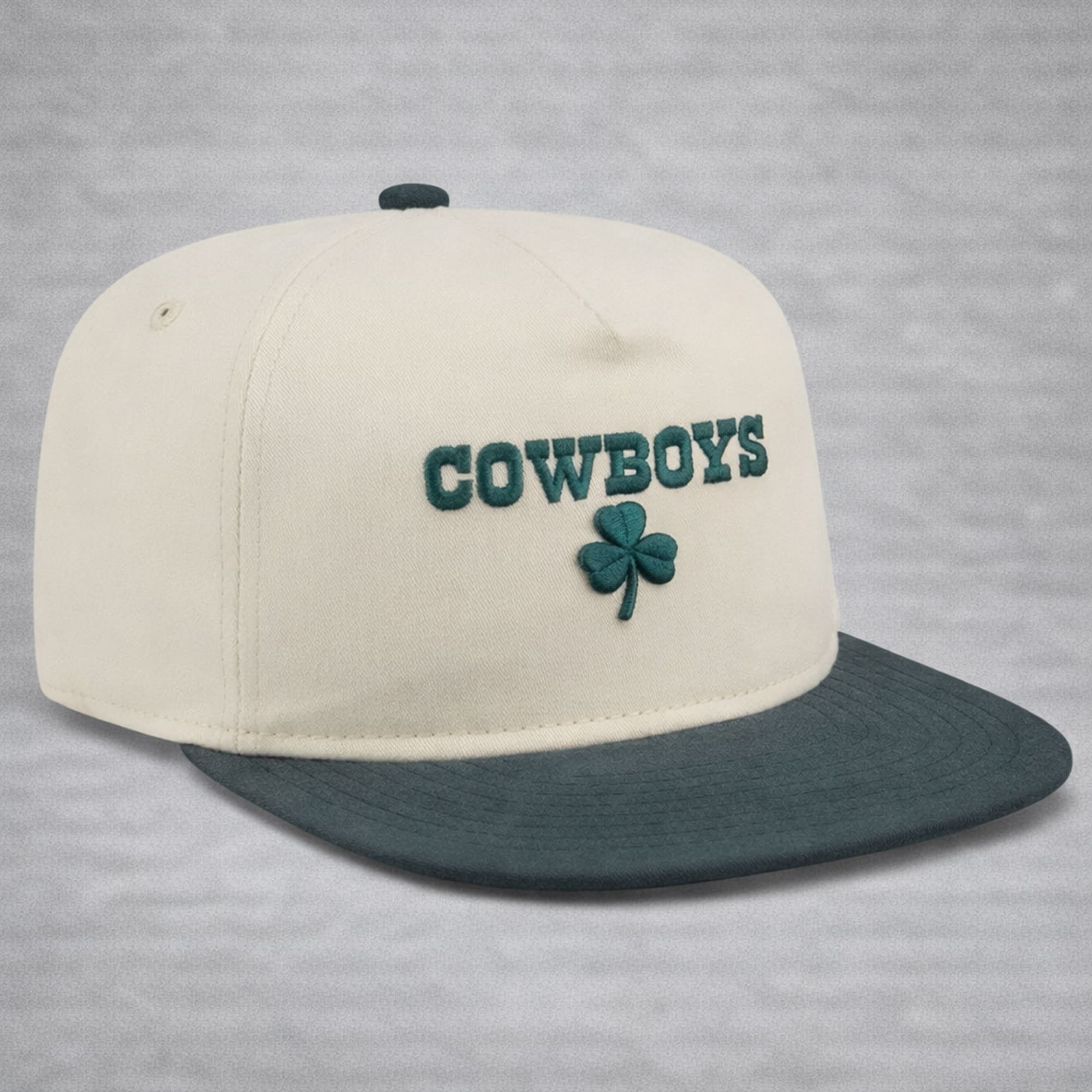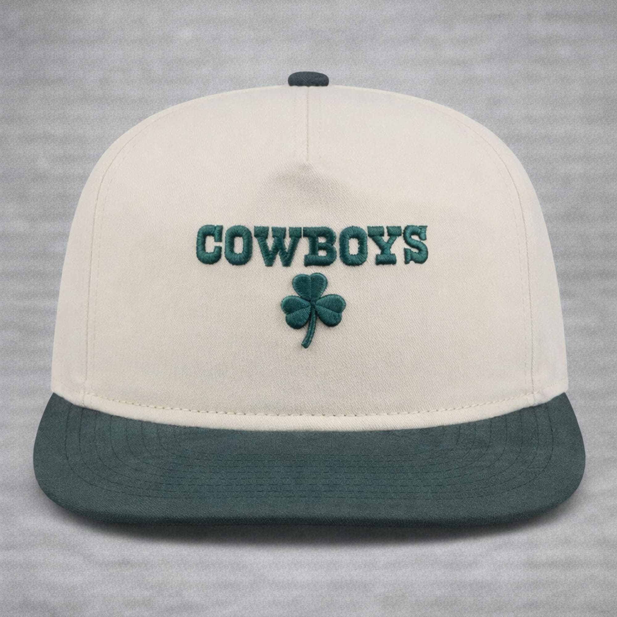 Bring a little extra luck to your fan gear with the 2026 Dallas Cowboys Patrick’s Day Metallic Hat. This clean two-tone cap pairs a crisp cream crown with a deep green brim, creating a fresh, easy-to-style look that works for St. Patrick’s Day and beyond. The front embroidery features bold COWBOYS lettering with a classic shamrock underneath—simple, festive, and instantly recognizable. It’s the perfect hat for holiday parties, parades, tailgates, and watch nights when you want a subtle seasonal twist without going over the top.