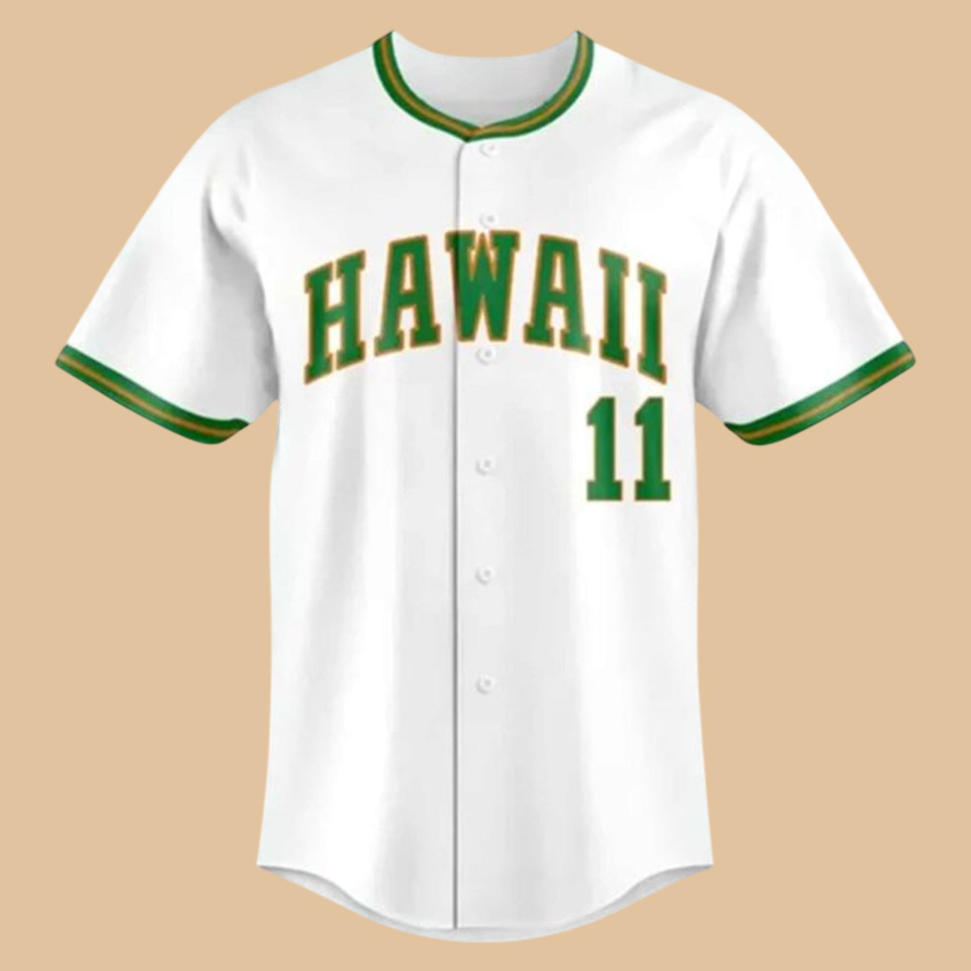 The 2026 Hawaii Baseball Honor Coach Les Murakami Baseball Jersey is made for fans who want to wear history with pride. Up front, the bold “HAWAII” wordmark delivers a timeless on-field look, paired with the number 11 to represent a legacy that still matters today. The crisp green-and-gold trim around the collar and sleeves adds that authentic baseball finish—simple, sharp, and instantly recognizable.