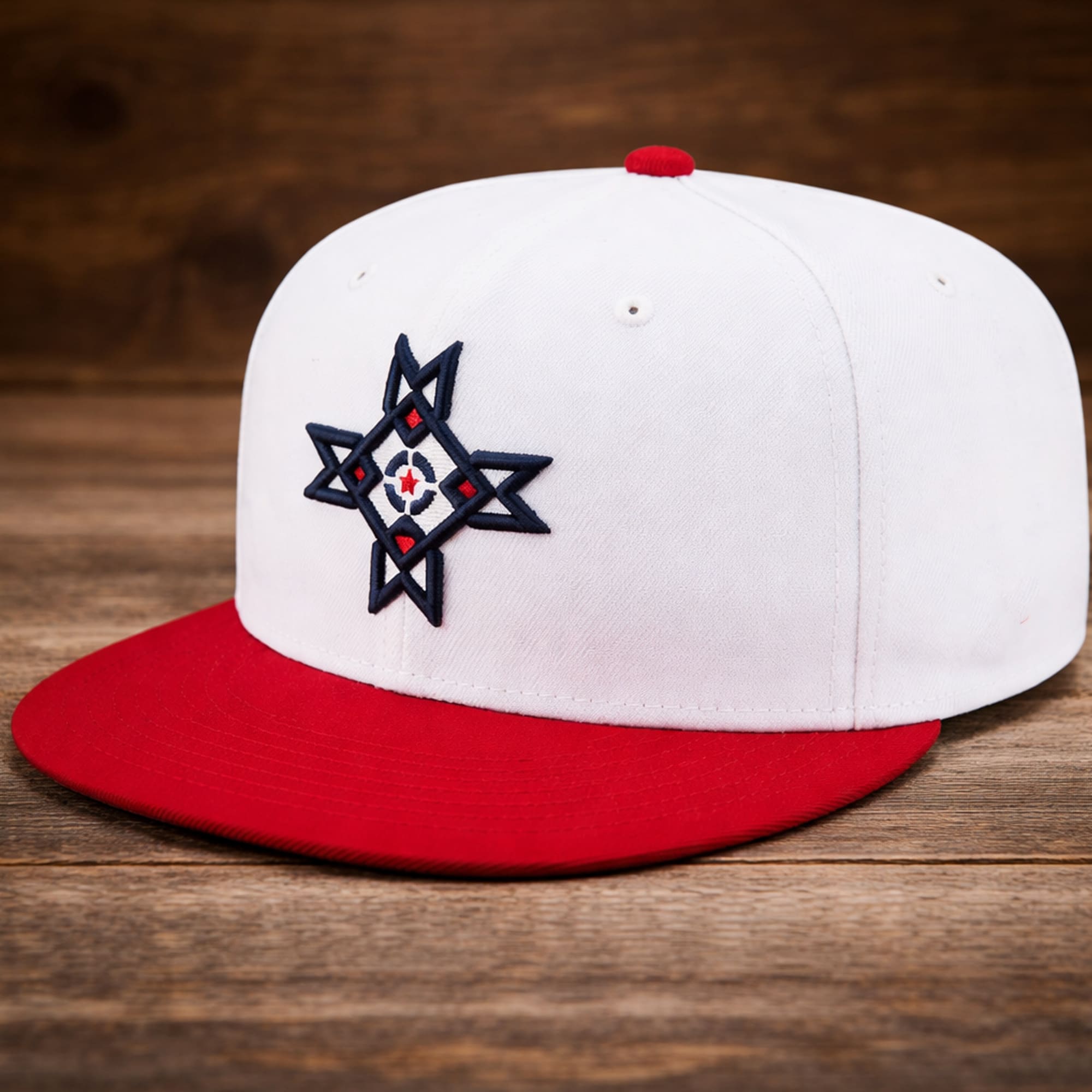 The 2026 Indianapolis Indians Native American Heritage Night Hat is a standout cap created to reflect the spirit of a meaningful themed ballpark event. Inspired by Native American Heritage Night, this design combines classic baseball style with heritage-influenced visual details that make it feel more special than an everyday fan accessory. The hat features a clean white crown paired with a bold red brim, creating a sharp and timeless color combination that is easy to wear on game day or as part of a casual outfit. The front is highlighted by a geometric emblem that gives the cap a distinct identity tied to the event, adding visual depth and commemorative value. As a hat connected to a special promotional night, the 2026 Indianapolis Indians Native American Heritage Night Hat offers fans a collectible piece that celebrates both baseball and community recognition.