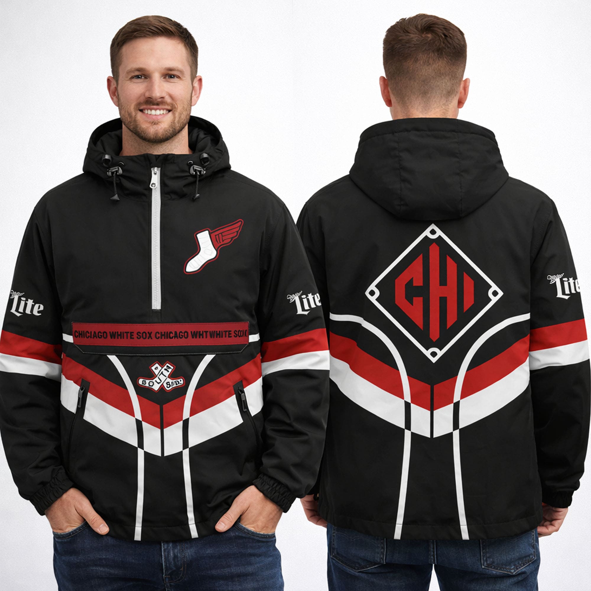 The color-block layout creates movement and contrast, while the hooded half-zip style adds a practical streetwear feel. Inspired by classic city-connect fashion, this jacket captures the spirit of game day, urban culture, and old-school team pride in one standout piece. It works well for cool evenings, casual outings, stadium trips, and fans who love giveaway apparel with a bolder personality.