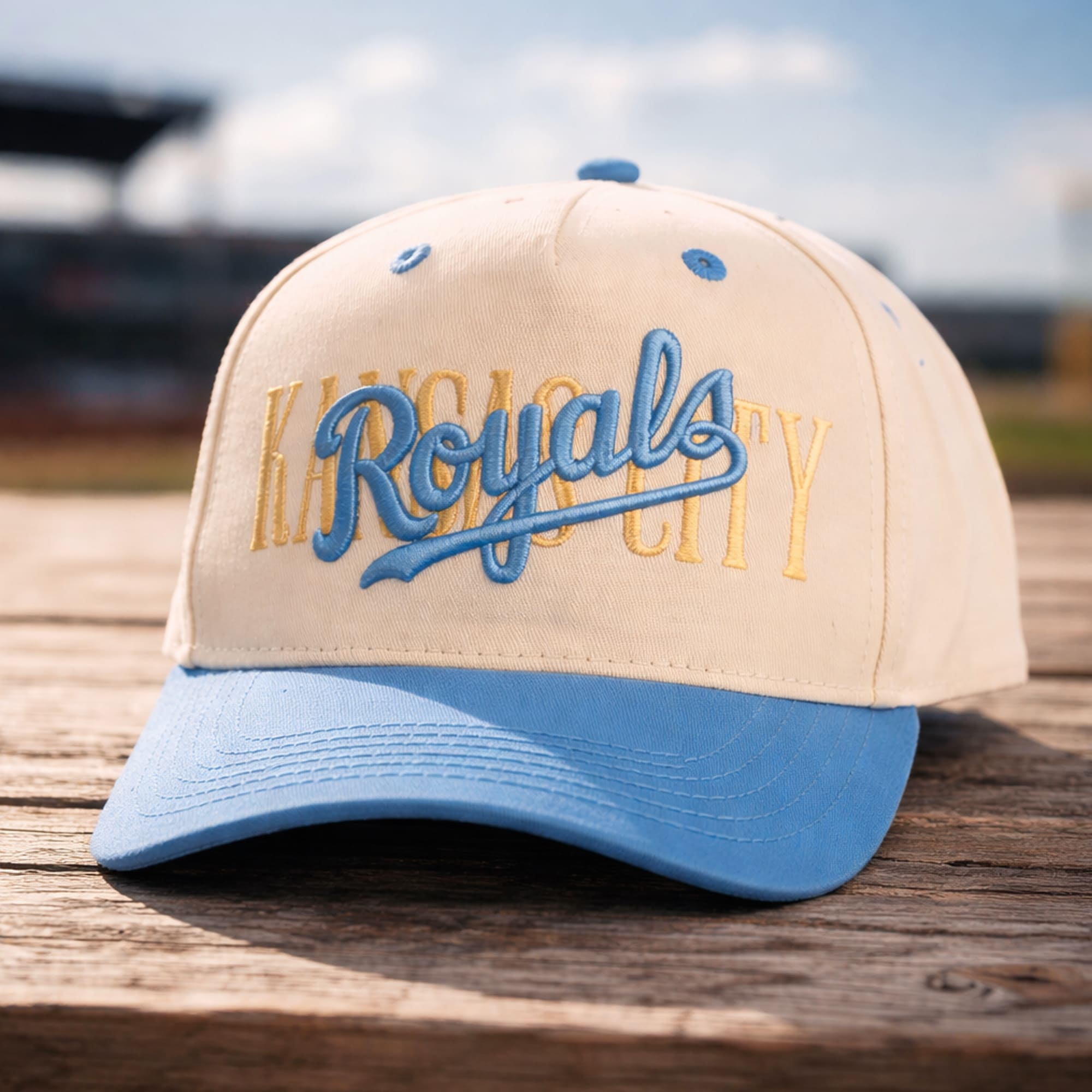 The 2026 KC Royals Nurses Weekend Hat Giveaway is a clean and meaningful cap made for fans who love baseball and want to celebrate the care, dedication, and hard work of nurses. This design features a soft cream crown paired with a light blue curved brim, creating a fresh and classic color combination that feels calm, stylish, and easy to wear. The front embroidery stands out with layered lettering that gives the hat depth and character, while the soft blue details add a smooth game-day finish.