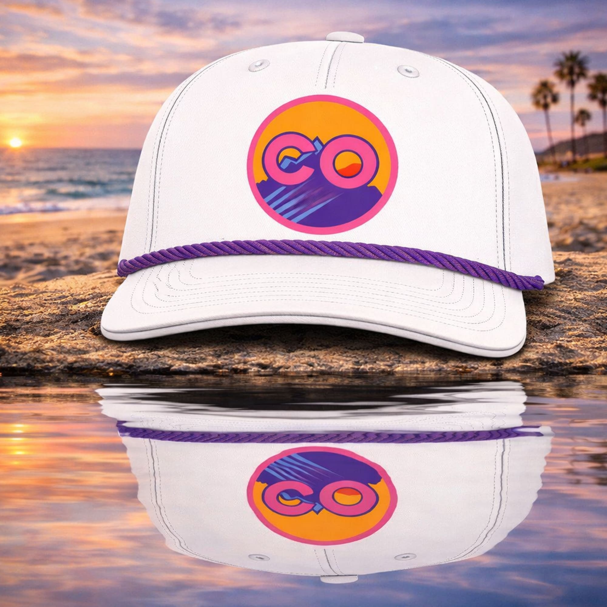 The 2026 Rockies City Connect Hat Giveaway is a vibrant statement piece that brings together clean style, modern color, and memorable team-inspired character. This cap features a crisp white crown that creates a sharp, versatile base, while the front logo adds an energetic pop of purple, pink, and orange. The circular emblem feels inspired by sunset tones and mountain scenery, giving the hat a fresh visual identity that stands out right away. A braided purple rope across the front adds a retro sport touch, making the design feel both classic and contemporary at the same time.