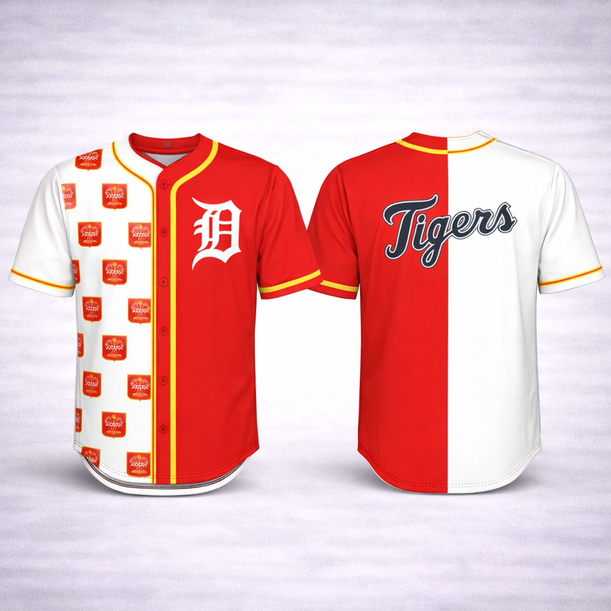 This jersey uses a bold red and white color combination that instantly reflects the spirit of Polish heritage while still feeling connected to Detroit baseball. The front features a clean split design, pairing the classic Detroit “D” with repeating heritage-inspired graphic details for a look that feels festive and memorable. On the back, the two-tone layout and flowing Tigers script create a strong game-day finish that is easy to recognize.