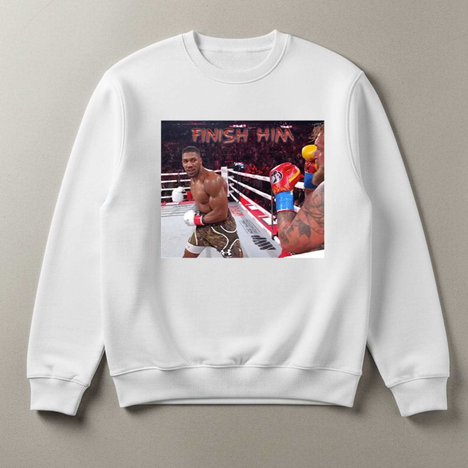 The Anthony Joshua Finish Him Jake Paul Shirt is perfect for fans who want to wear a defining boxing moment with confidence. Order yours today and show your love for the sport with bold, unapologetic style.