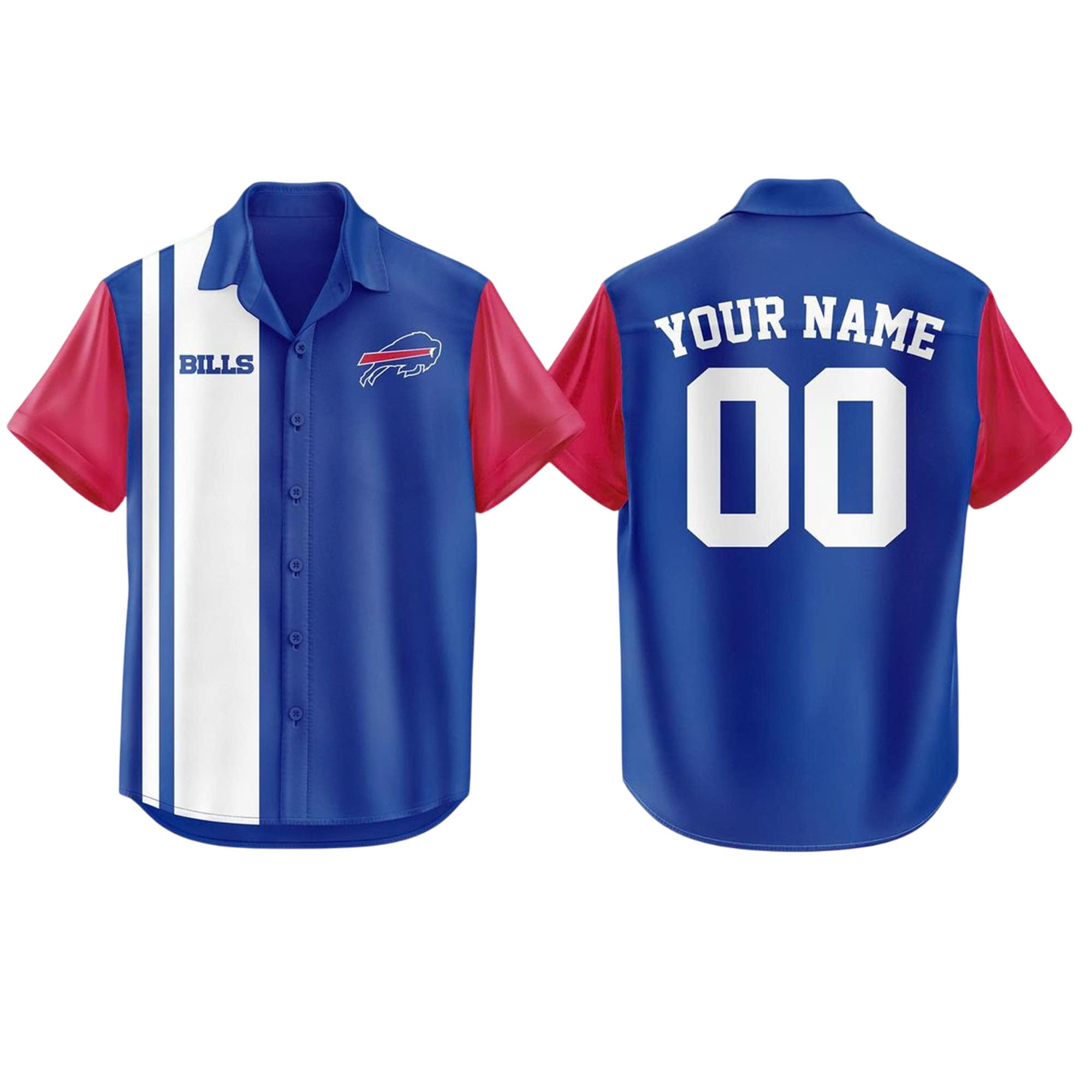 The Buffalo Bills Bowling Stripe Hawaiian Shirt is designed for fans who want to blend classic team pride with a relaxed, vintage-inspired look. The standout bowling stripe on the front creates a clean vertical contrast that instantly catches the eye, while the iconic color palette reflects the strong identity of the Buffalo Bills. This design draws inspiration from retro bowling shirts and tropical Hawaiian silhouettes, delivering a fresh crossover style that feels both nostalgic and modern. Short sleeves and a button-down front make this shirt ideal for game days, tailgates, beach outings, or casual weekends. The customizable back adds a personal touch, allowing fans to showcase their own name and number for a unique, statement-making look.