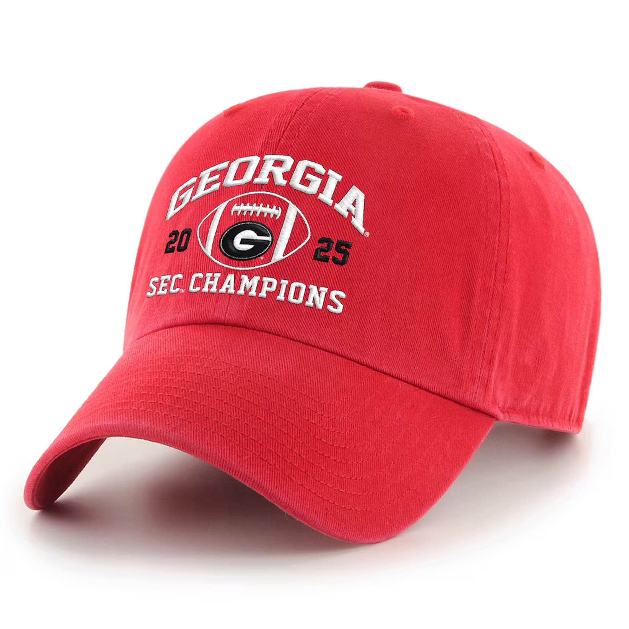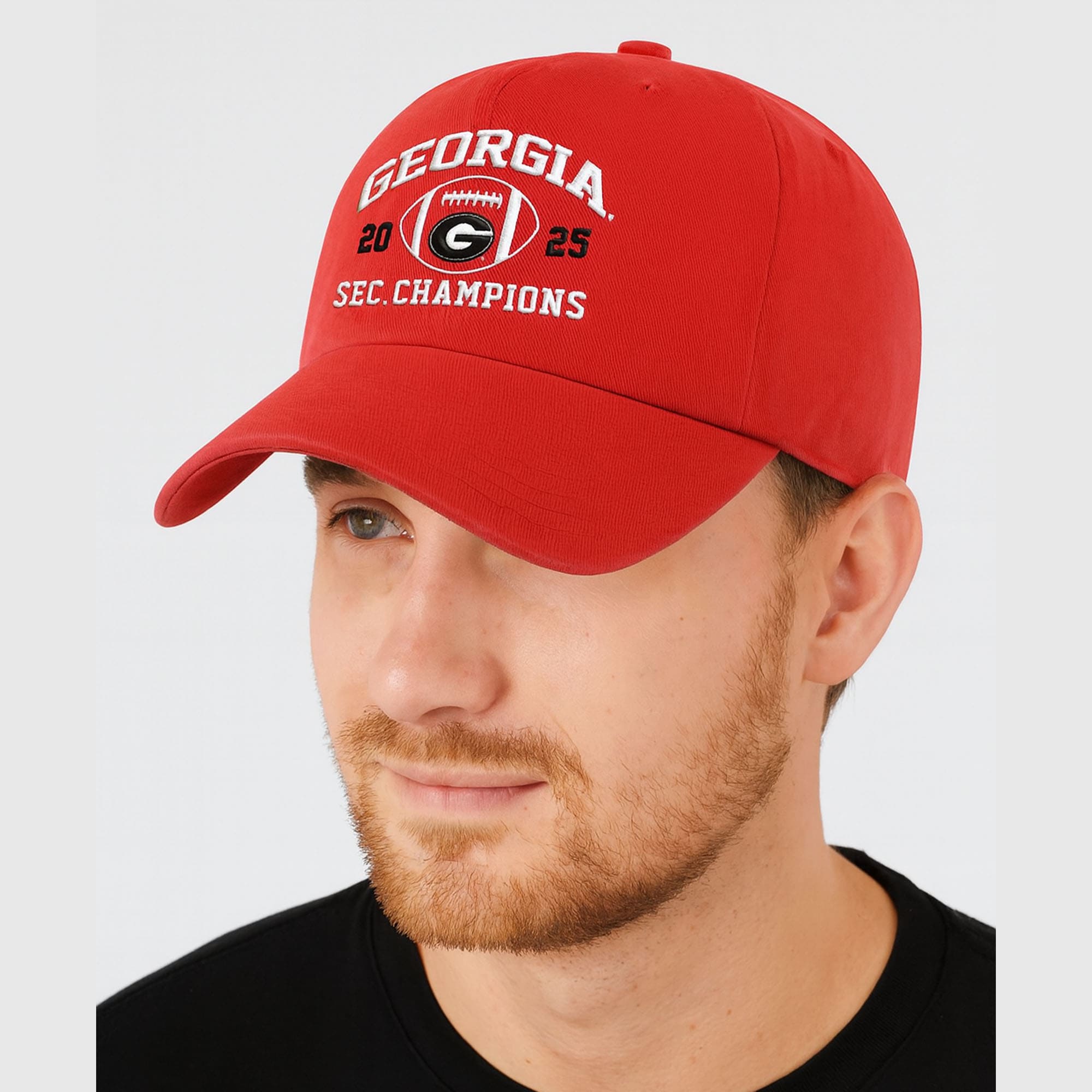 Celebrate a title season every time you step outside with the Bulldogs 2025 SEC Football Champions Hat. This bold red cap features a curved brim and a front embroidery of a football graphic, “Bulldogs,” “2025,” and “SEC Champions,” so your championship pride is clear from every angle. The classic low-profile crown gives a relaxed, easygoing fit that works at the stadium, tailgate, or around town.