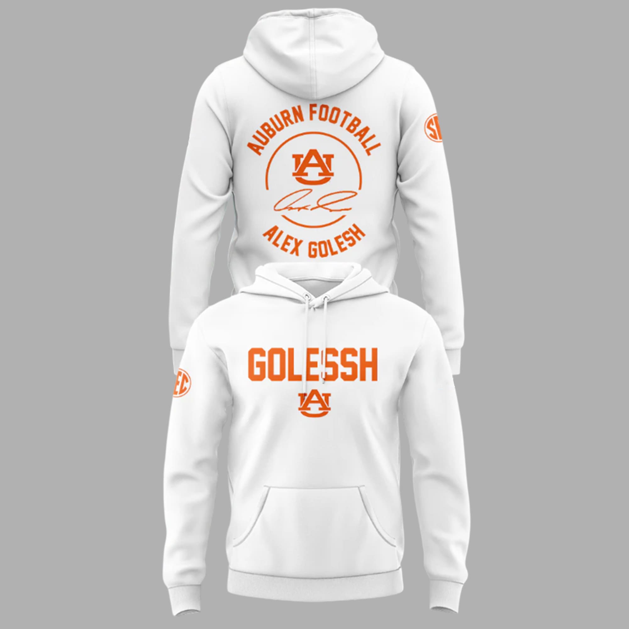 The Coach Alex Golesh Auburn Tigers Shirt is crafted for true fans who want to showcase their pride with a clean, standout design. Featuring bold Auburn orange graphics on a crisp white background, the shirt highlights the coach’s name “Golesh” across the chest paired with the iconic Auburn Tigers logo for an unmistakable team identity. The back design delivers even more fan appeal, with “Auburn Football,” the Auburn emblem, and a stylized signature graphic that adds a personal, collectible touch. It’s a perfect statement piece for supporters who appreciate both comfort and heritage.