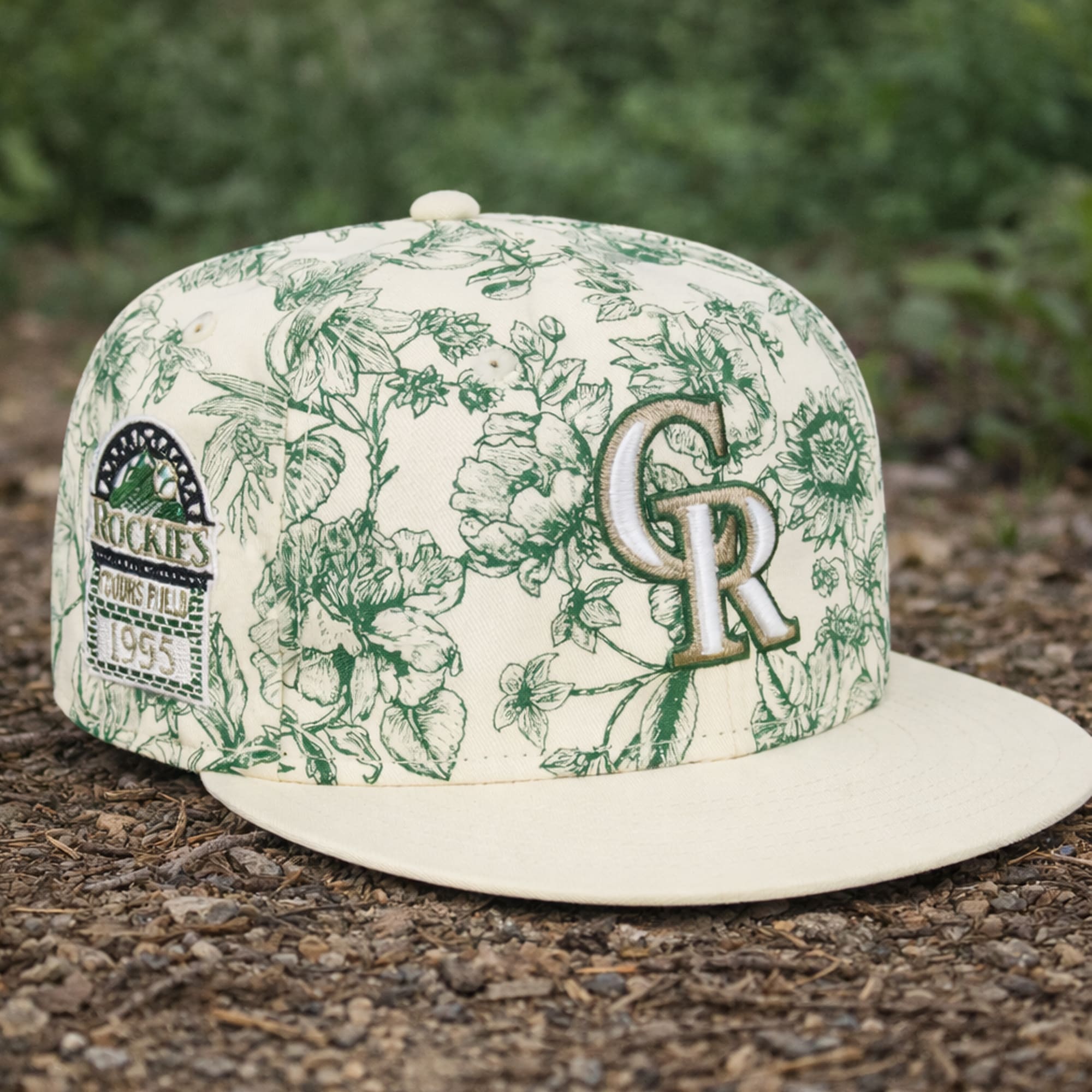 The Colorado Rockies Spring Floral Hat blends classic team spirit with a refreshing seasonal design, making it a standout accessory for any Rockies fan. Featuring a soft cream base layered with intricate green floral artwork, this cap captures the beauty of spring while staying true to Colorado’s bold baseball identity. The embroidered “CR” logo on the front is detailed and raised, delivering a premium look that instantly represents the Rockies with confidence.