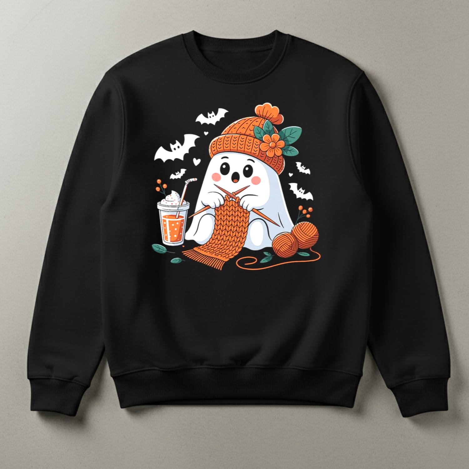 Cute Halloween Ghost Crochet Pumpkin Coffee Graphic Shirt