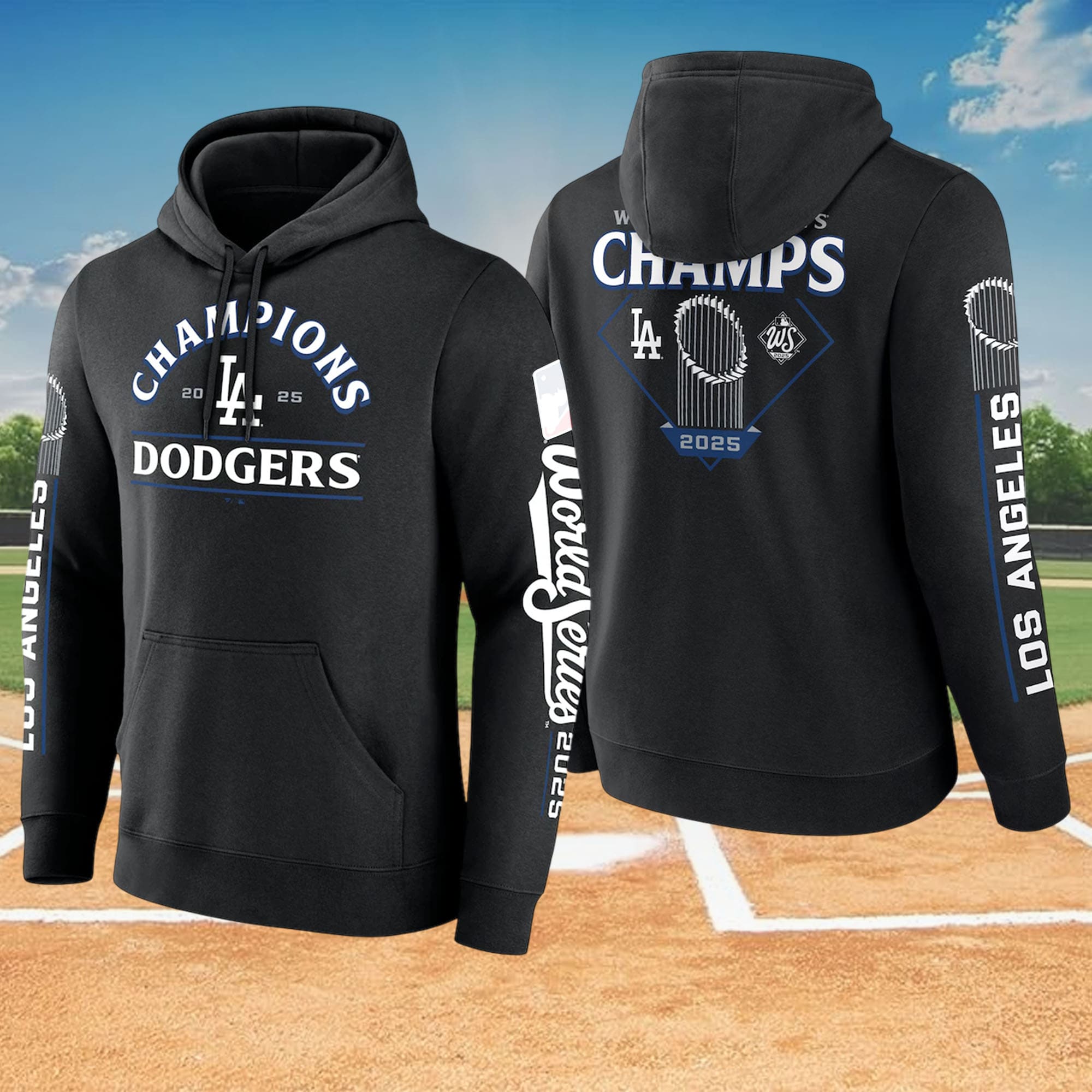 The Dodgers 2025 World Series Champions Hoodie is a powerful tribute to Los Angeles’ historic championship run. This sleek black hoodie features the bold “Champions Dodgers 2025” print across the chest and a trophy-inspired graphic on the back that captures the glory of the team’s triumph. The sleeves proudly display “World Series 2025” and “Los Angeles,” showcasing your loyalty in every detail. Designed for both comfort and pride, it’s perfect for wearing during cool nights, postgame celebrations, or everyday streetwear. This hoodie isn’t just apparel — it’s a symbol of victory, unity, and the unforgettable energy of the Dodgers ruling the diamond once again.