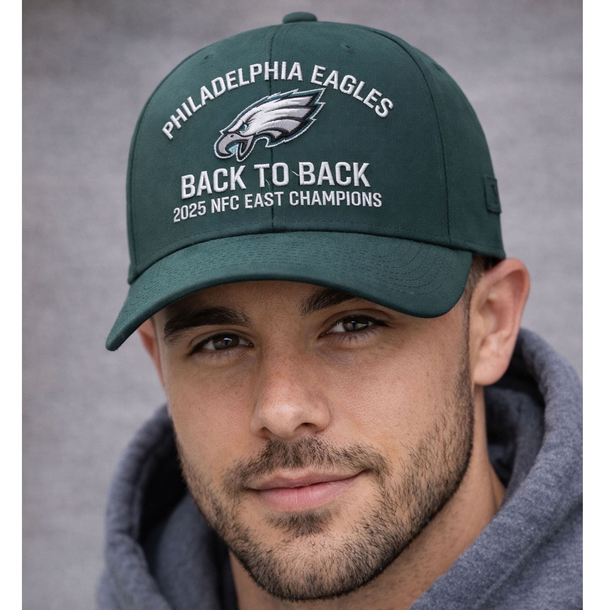 The Eagles Back To Back 2025 NFC East Champions Hat is a bold tribute to an unforgettable achievement—winning the NFC East in consecutive seasons. Designed in a classic deep green tone, this hat proudly features crisp embroidered lettering reading “Back To Back 2025 NFC East Champions,” paired with the iconic eagle head logo. The arched “Philadelphia Eagles” text frames the design perfectly, symbolizing legacy, dominance, and consistency at the top of the division.