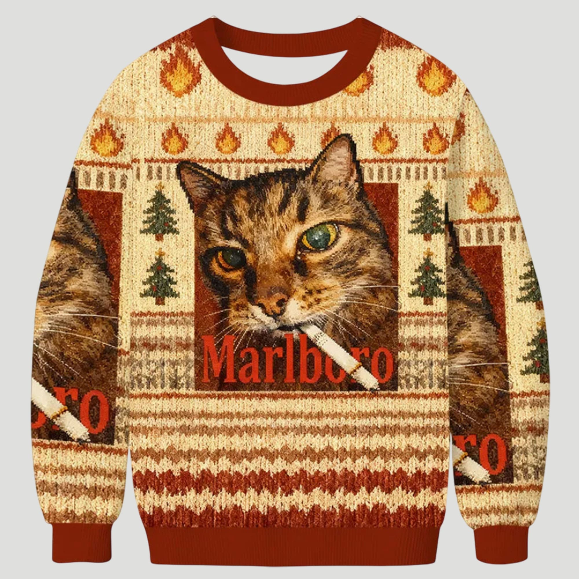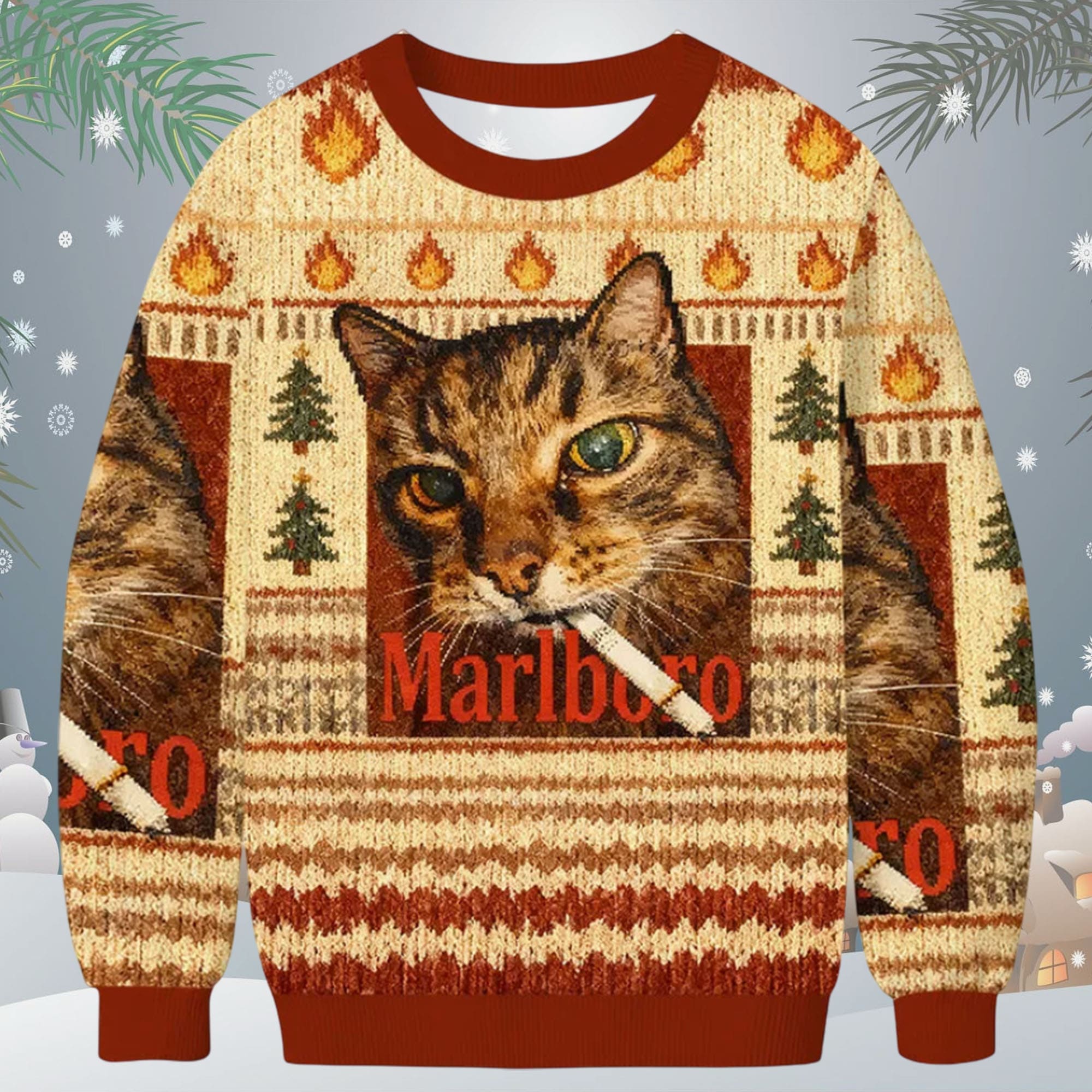 Funny Smoking Cat Meme Christmas Ugly Sweater
