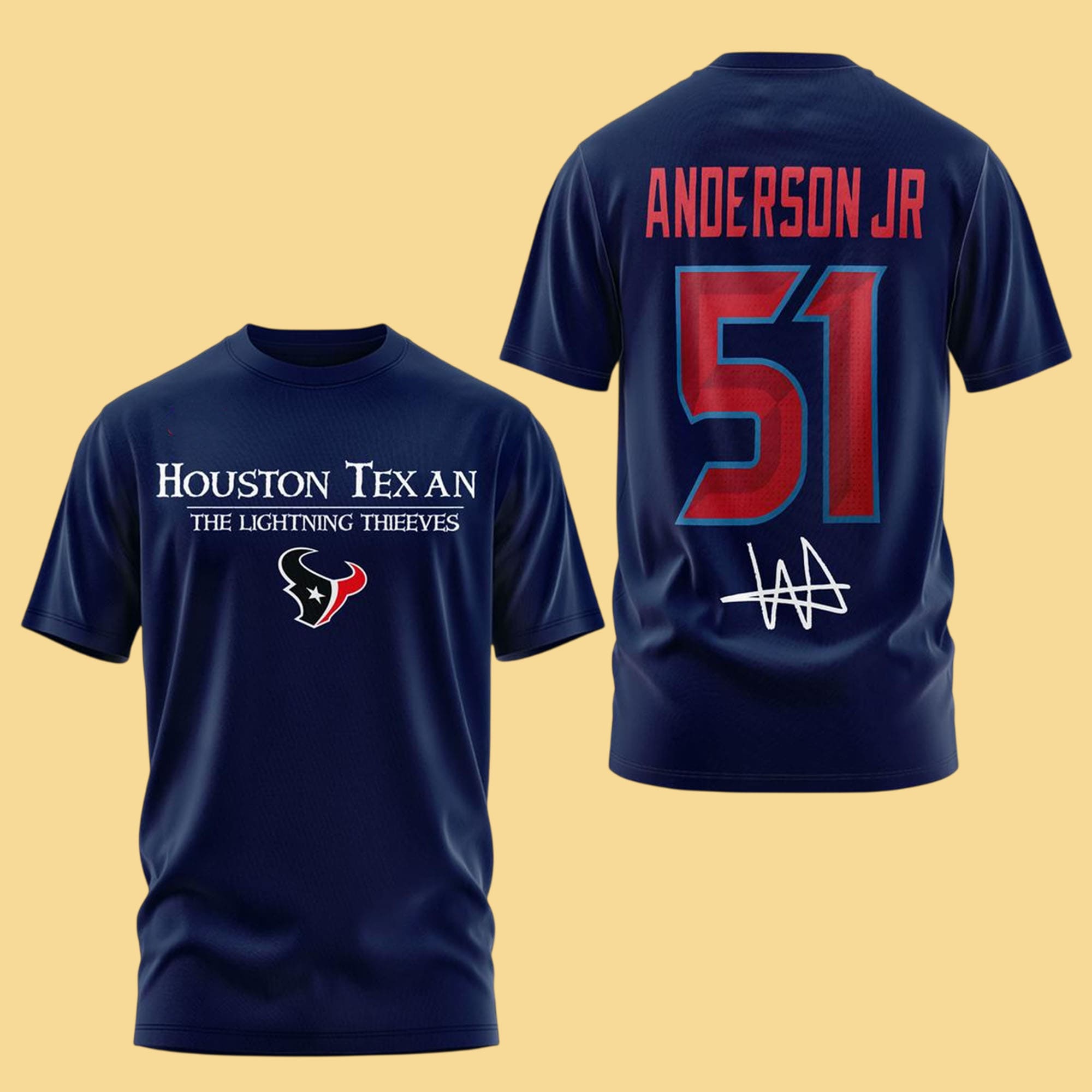 The Houston Texans Will Anderson Jr 51 Lightning Thieves Hoodie delivers a bold statement inspired by elite defense and rising-star energy. Built around the impact of Will Anderson Jr. and the pride of the Houston Texans, this hoodie blends clean typography with striking back-number detail to create a look that feels both powerful and contemporary. The front graphic introduces the “Lightning Thieves” concept—symbolizing speed, disruption, and relentless pressure—while the back showcases Anderson Jr.’s name and number 51 in a standout, game-ready style. A subtle autograph-style accent adds character, turning this hoodie into a statement piece for fans who value intensity and modern design. Ideal for game day, streetwear fits, or everyday comfort, it captures the edge and confidence of Texans football.