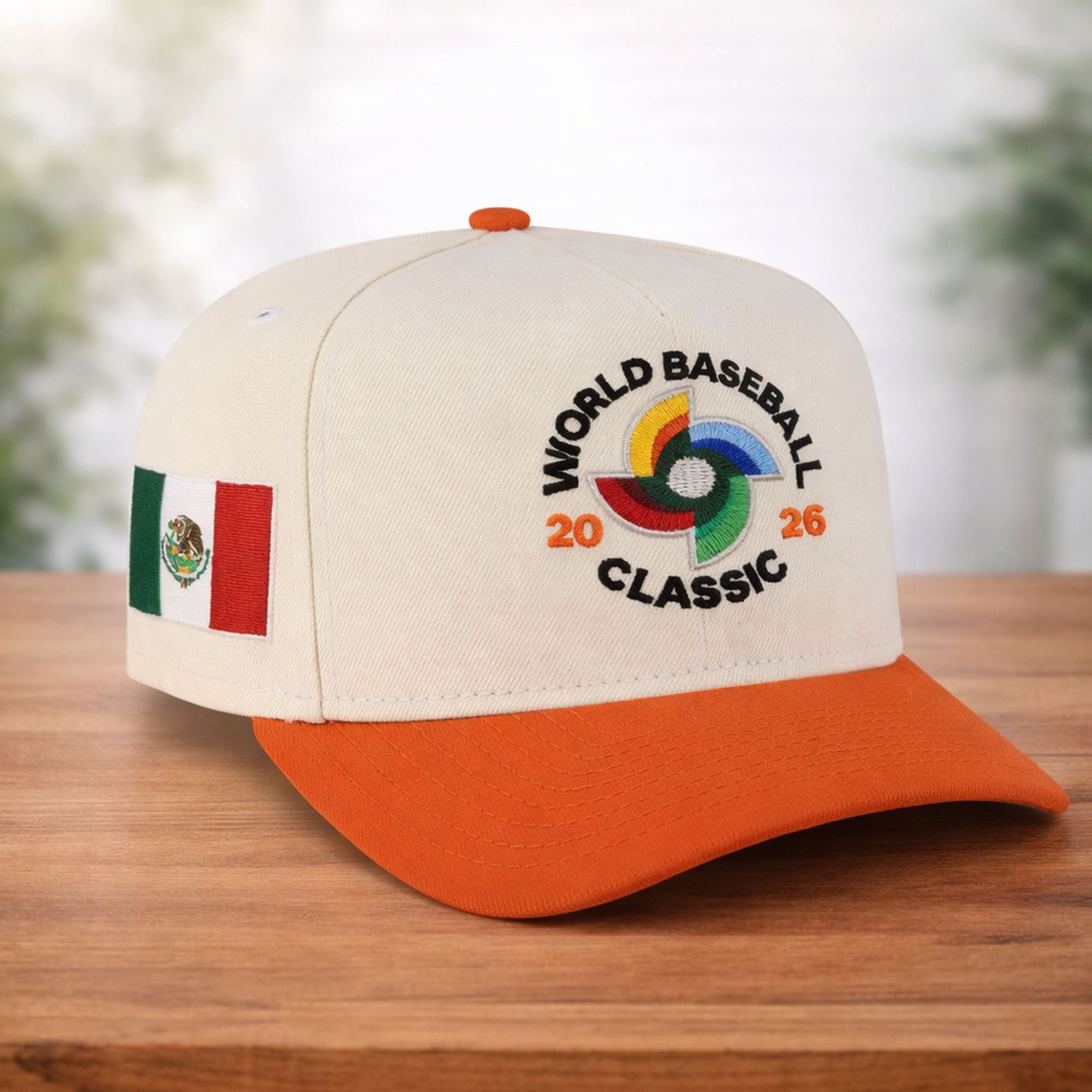 The Mexico 2026 World Baseball Classic Chrome White Snapback Hat is created for fans who proudly stand behind the Mexican national baseball team during the World Baseball Classic 2026. The clean chrome white crown represents unity and sportsmanship, while the vibrant orange brim adds energy and excitement inspired by the intensity of international competition. At the front, the embroidered “World Baseball Classic 2026” emblem symbolizes global baseball excellence and the coming together of elite national teams from around the world. The side features the Mexican flag patch, a powerful symbol of heritage, resilience, and national pride.