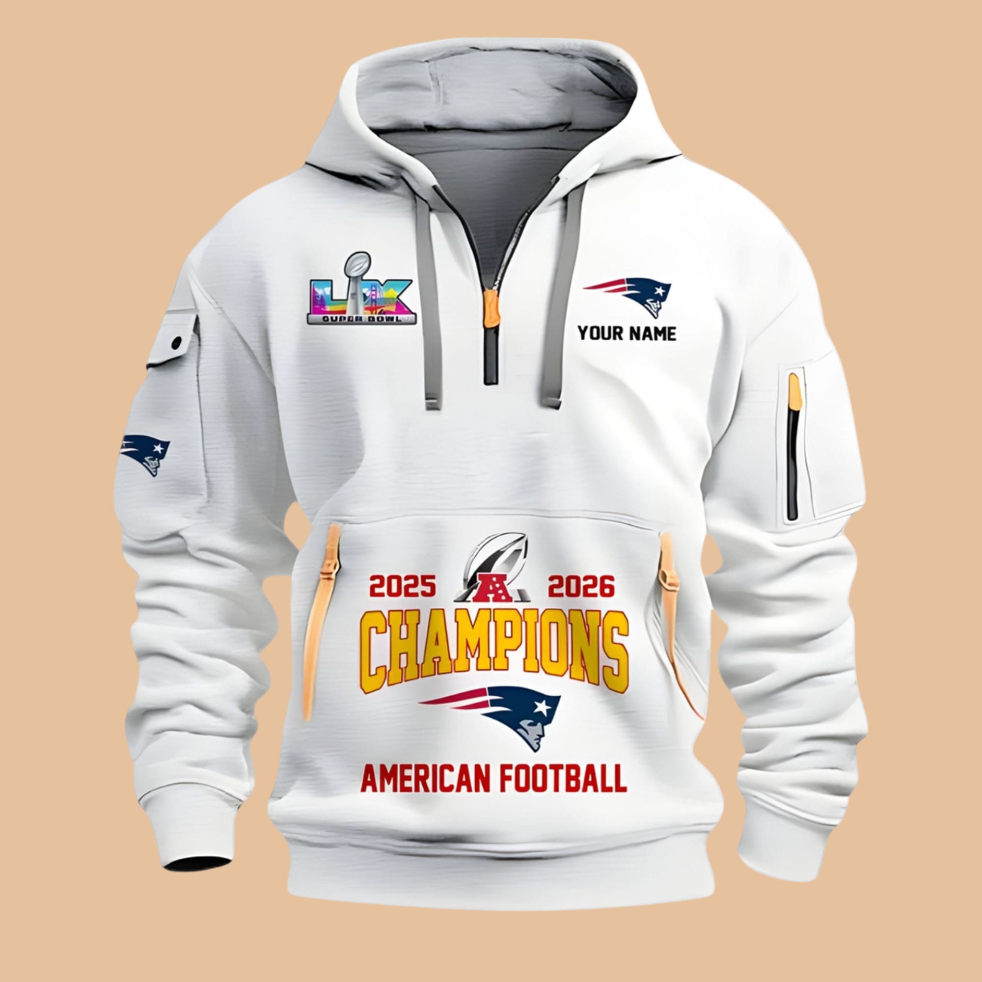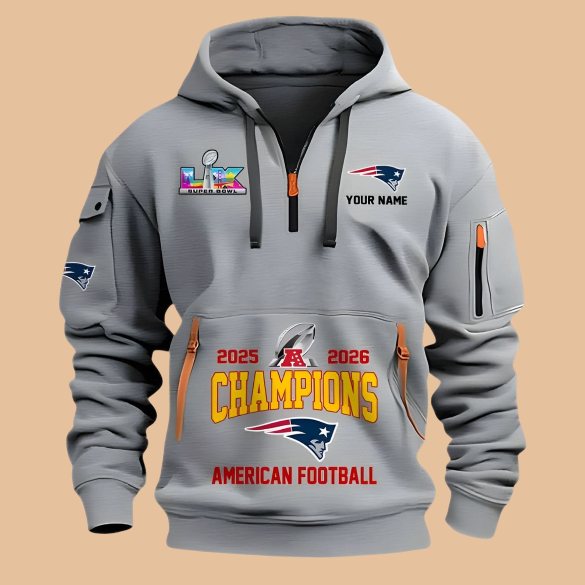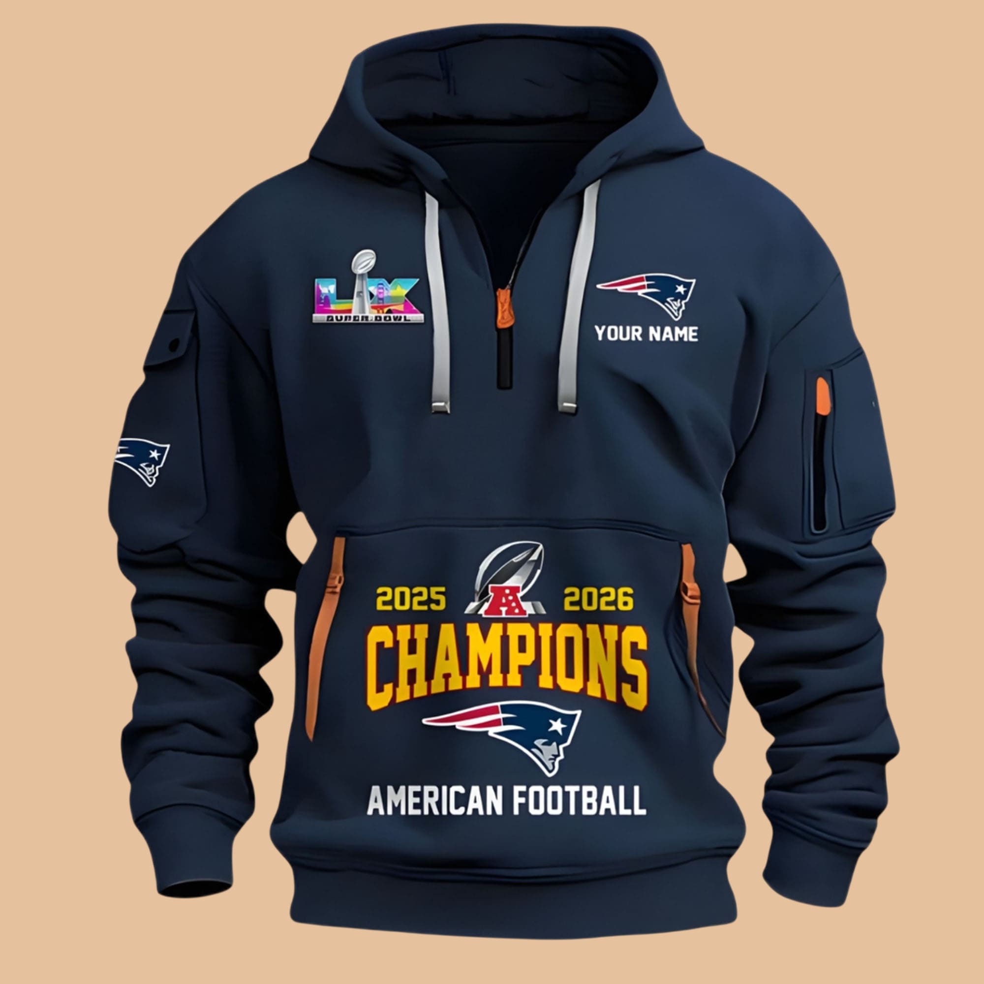 New England Patriots 2025 2026 AFC Champions Quarter Zip Hoodie