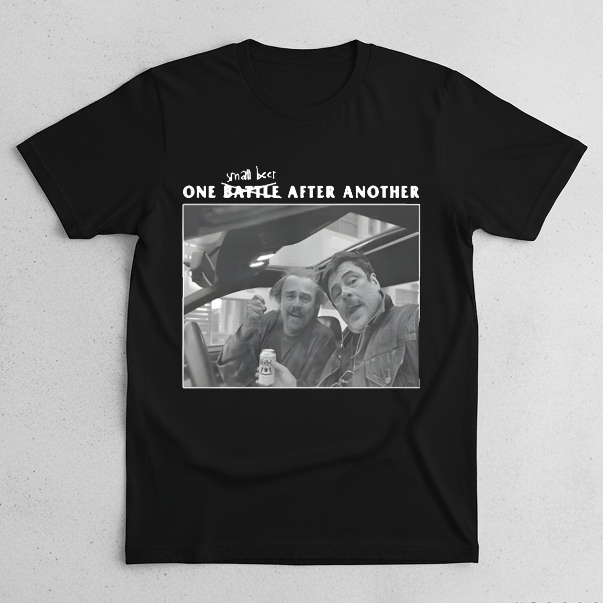 The One Small Beer Battle After Another T-Shirt is a fun and stylish way to show your love for a classic film moment. Comfortable, unique, and nostalgic get yours today!