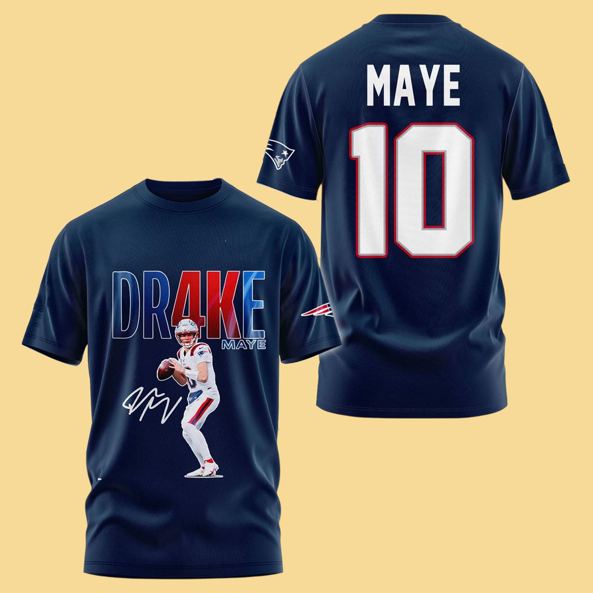 The Patriots Drake Maye 10 Hoodie is created for fans who believe in the next chapter of New England football. Inspired by the legacy of the New England Patriots and the rising impact of quarterback Drake Maye, this hoodie blends clean visuals with bold player identity. The front design highlights Drake Maye in action with strong typography that instantly draws attention, while the back features his name and number 10 for a classic player-style finish. This balanced layout delivers a modern look that feels both powerful and timeless, making it perfect for game days, watch parties, or everyday streetwear.