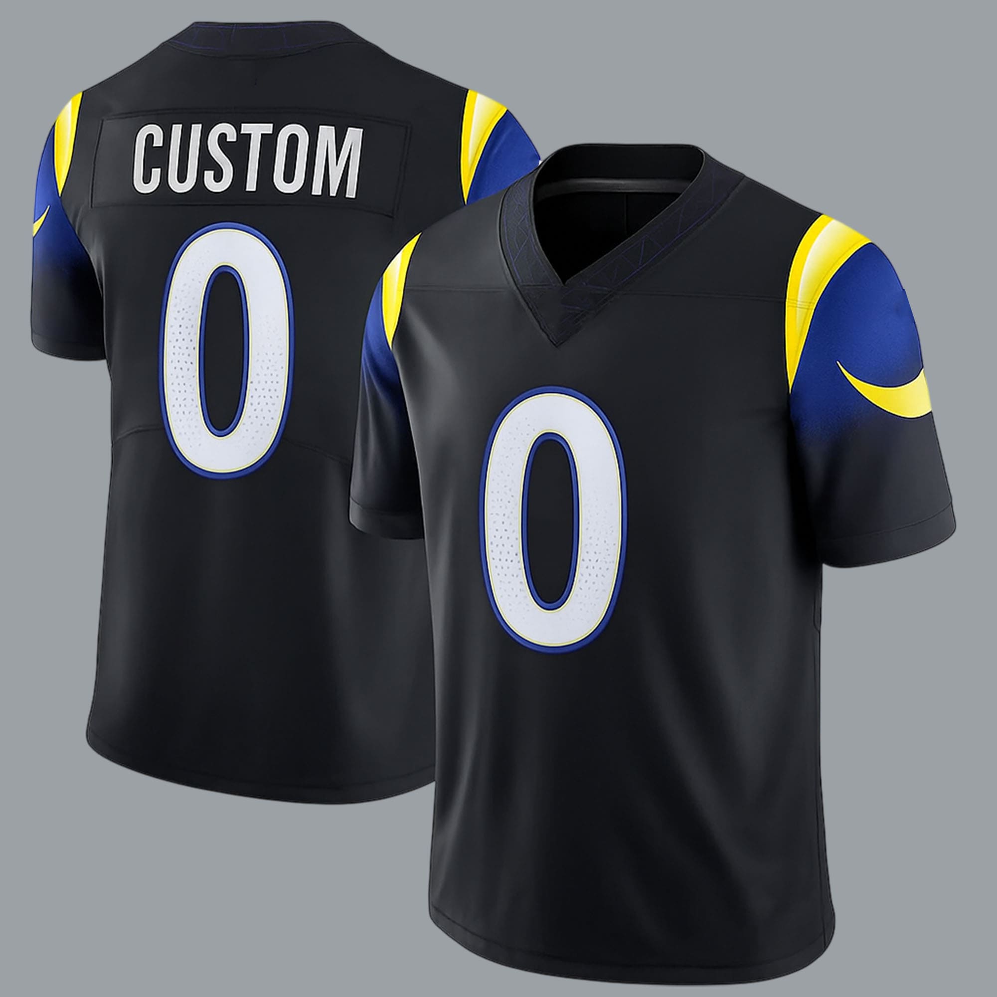 The Rams 2025 Midnight Mod Rivalries Football Jersey features a modern, bold design that celebrates fierce competition. This jersey features a bold all-black base, accented with the signature Los Angeles Rams yellow and blue. The clean, sophisticated design highlights the iconic Rams logo, creating a strong visual impact that stands out both on and off the field. The all-black color represents strength, resilience, and competitive spirit, perfect for passionate fans who want to express their team spirit in a stylish and individual way.