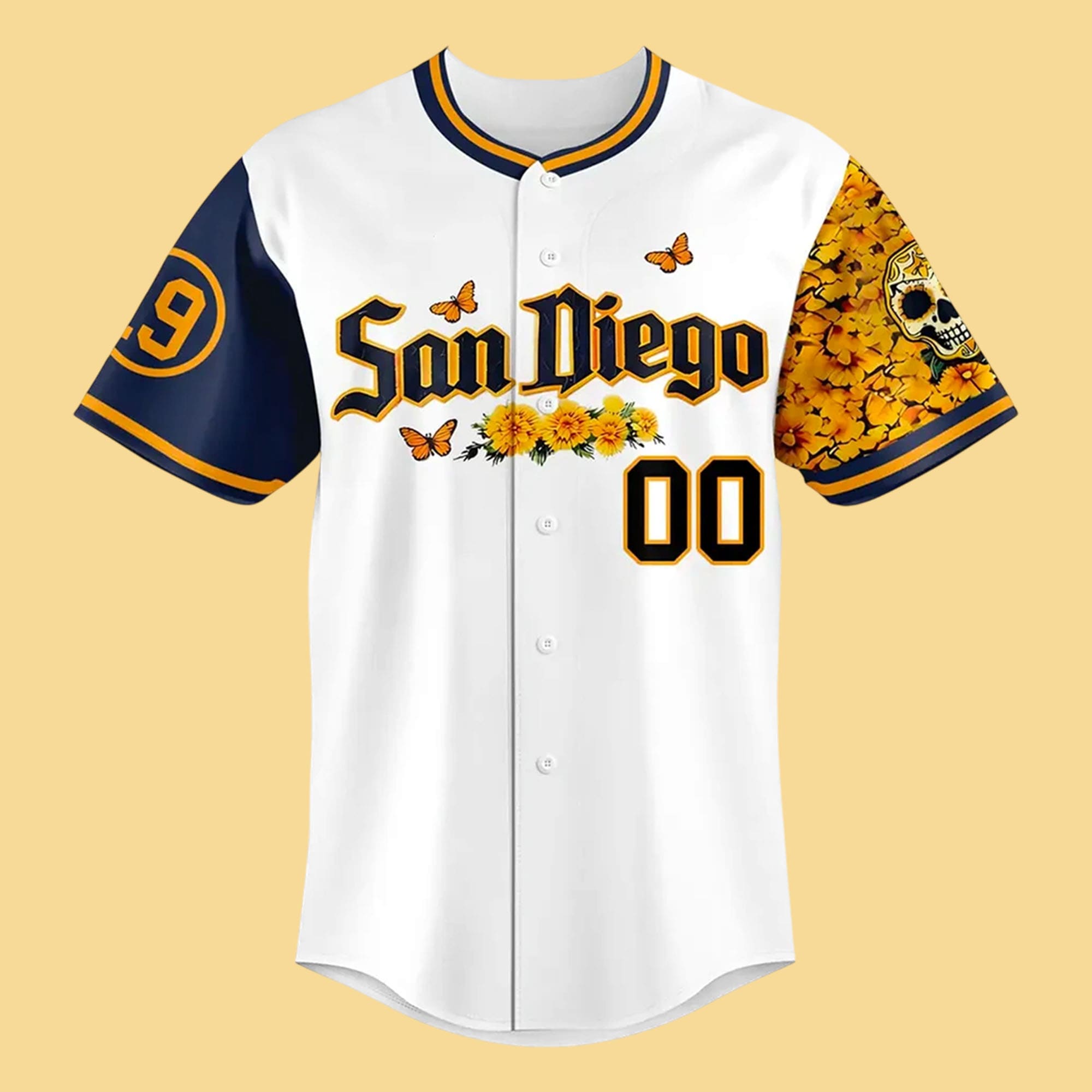 The San Diego Padres City Connect Día De Los Muertos 1990 Jersey is a powerful fusion of baseball tradition and cultural storytelling. Inspired by Día de los Muertos, this jersey features rich symbolic details such as marigold flowers, butterflies, and skull artwork, all representing remembrance, life, and celebration. The classic “San Diego” lettering paired with bold colors and intricate sleeve graphics creates a striking visual balance between heritage and modern City Connect style. Customizable name and number options on the back allow fans to personalize the jersey while honoring the deep cultural roots that influence San Diego’s identity.