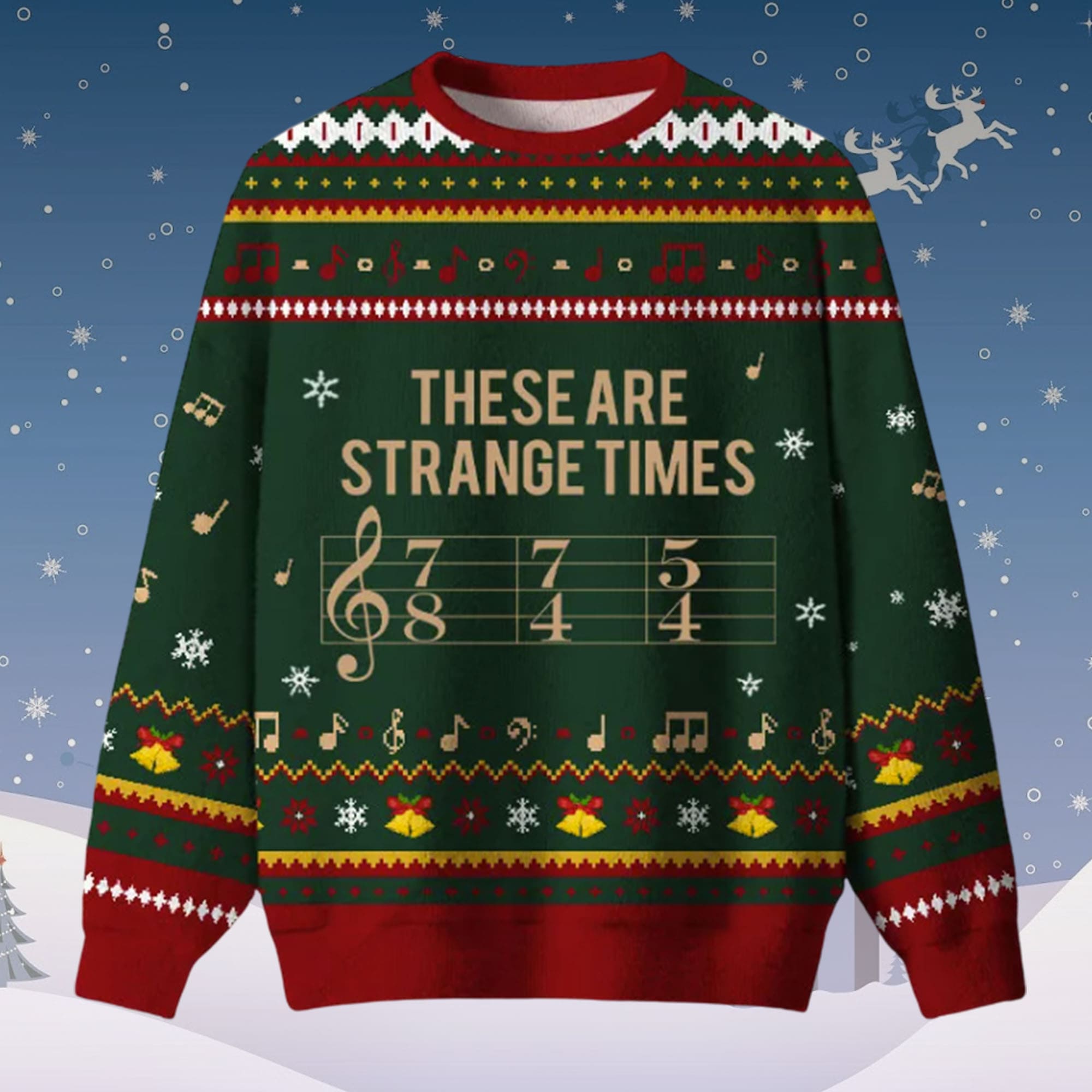 The These Are Strange Times Music Joke Ugly Christmas Sweater is more than festive apparel — it’s a playful way to express your passion for music and stand out in the crowd. Order now and share the joy of “strange times” with every note!