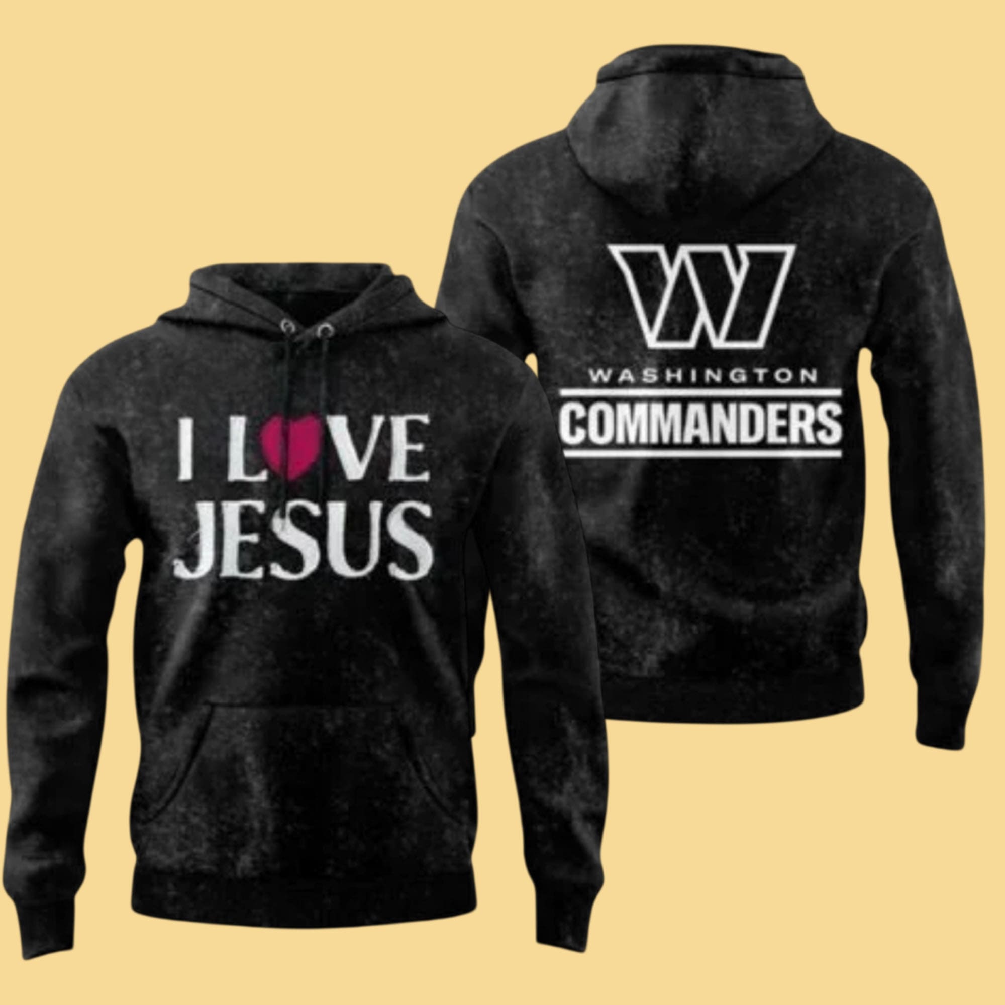 The Washington Commanders I Love Jesus Hoodie brings together two powerful expressions of identity: faith and loyalty. The front design features the heartfelt “I Love Jesus” message with a bold heart symbol, representing devotion, hope, and personal belief. On the back, the strong Washington Commanders graphic adds balance and pride, creating a hoodie that speaks both spiritually and culturally. This thoughtful contrast makes the design stand out—subtle yet confident, personal yet bold.